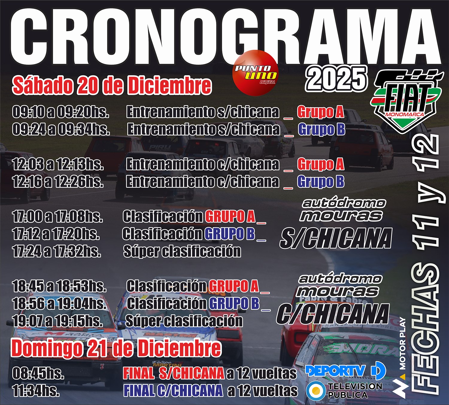 Los horarios para el último finde del 2025 ! Se hace saber que a la categoría se le ha asignado el sector de los BOXES TRIBUNA, del 14 al 20.