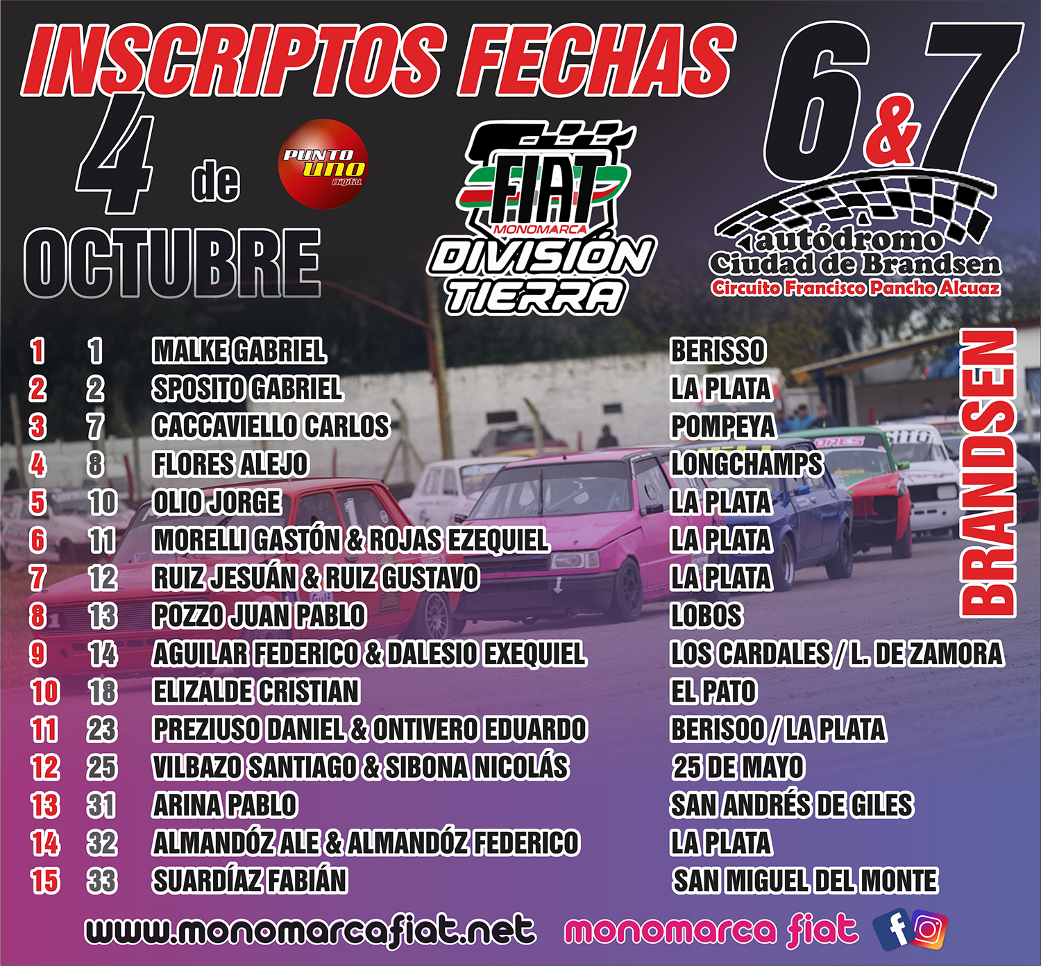 El Autódromo Francisco "Pancho" Alcuáz de Brandsen será el escenario de una nueva y apasionante fecha doble de la DIVSIONAL TIERRA. La sexta y séptima fecha tendrá lugar el próxima fin de semana y todos los protagonistas irán con el mismo objetivo que es bajar al campeón...!